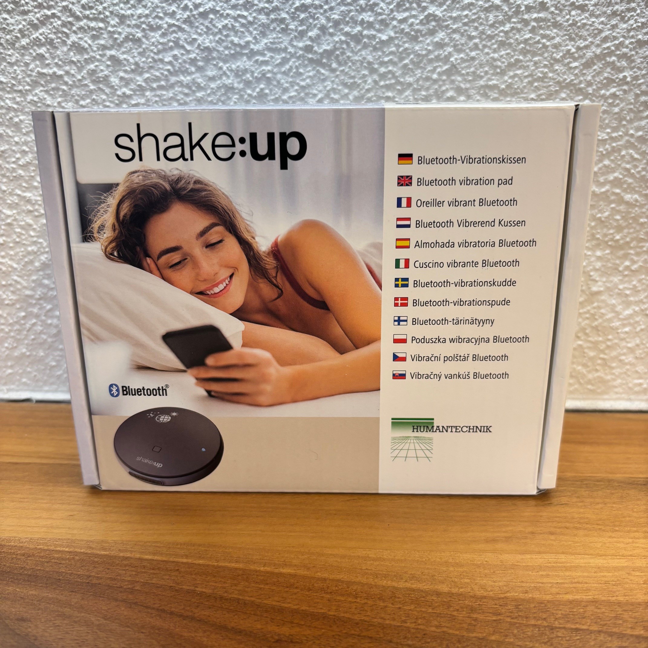 »shake:up« – das neue kabellose, intelligente Bluetooth-Vibrations-Wecksystem von Humantechnik bietet in der Verwendung mehr Flexibilität, Unabhängigkeit und Komfort gegenüber herkömmlichen kabelgebundenen Vibrationskissen. Für Menschen die ihr Smartphone auch als Wecker nutzen und denen die normale Vibration des Handys als Wecksignal zu schwach ist, bietet »shake:up« eine komfortable, kraftvolle und sichere Lösung für pünktliches Erwachen.